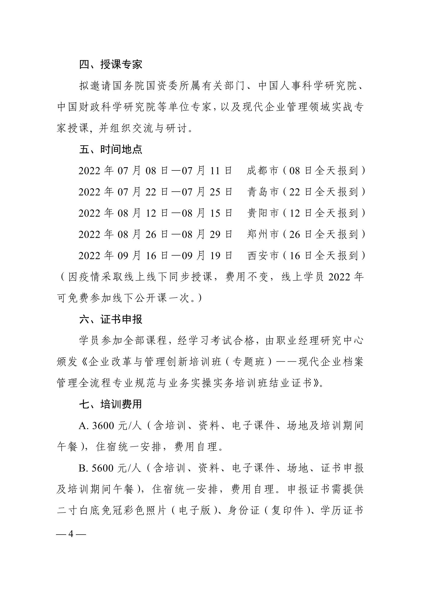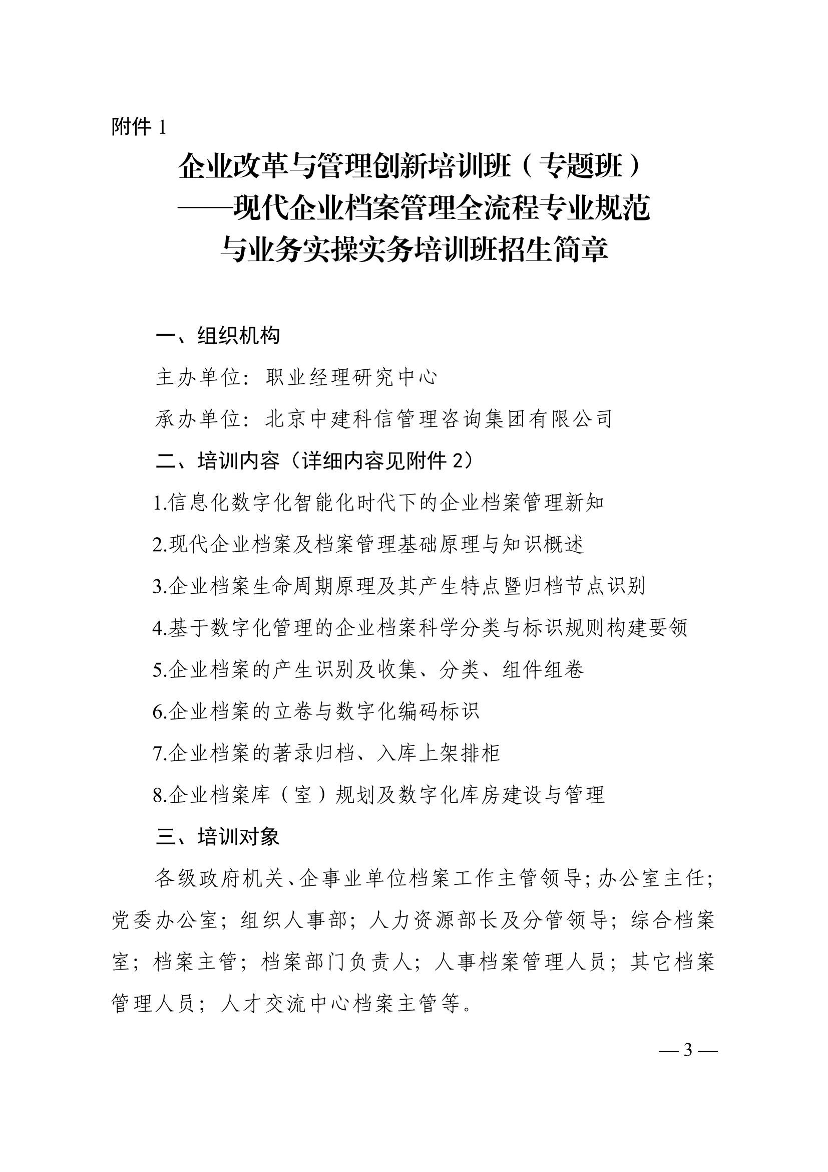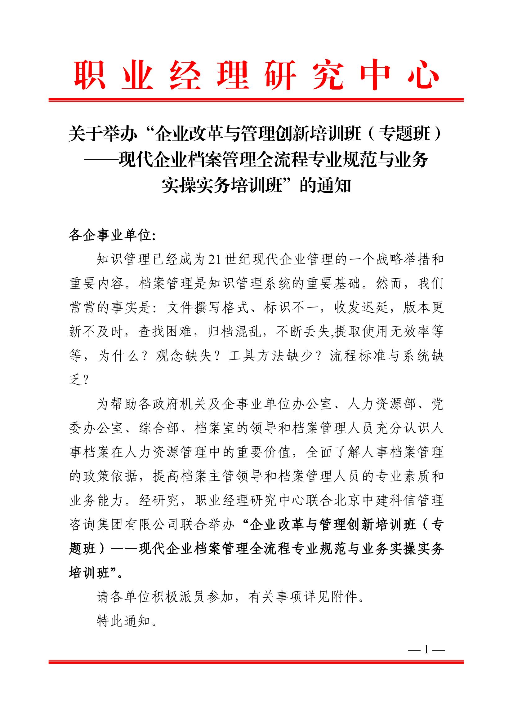 关于举办“企业改革与管理创新培训班(专题班)--现代企业档案管理全流程专业规范与业务实操实务培训班”的通知