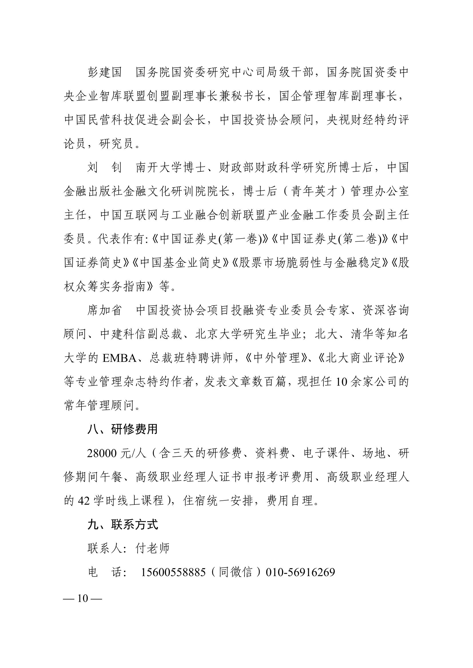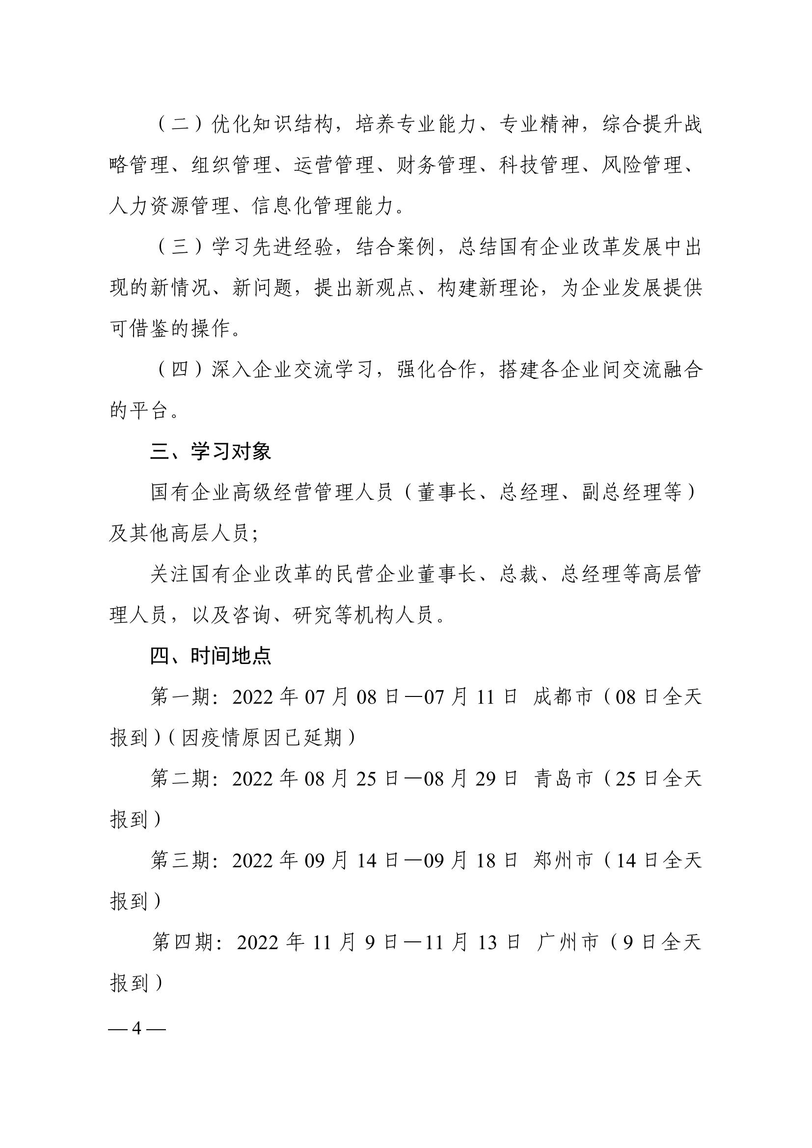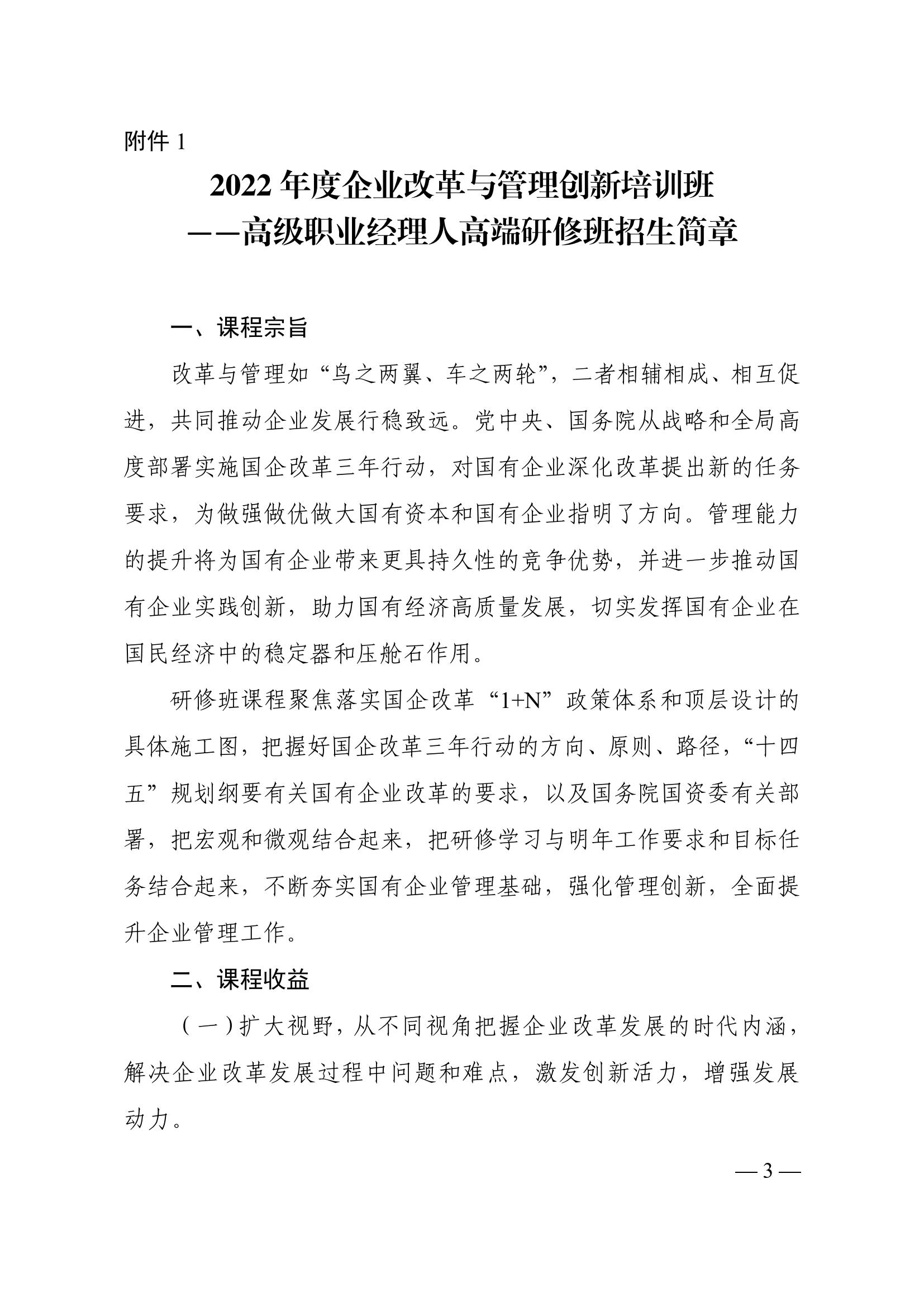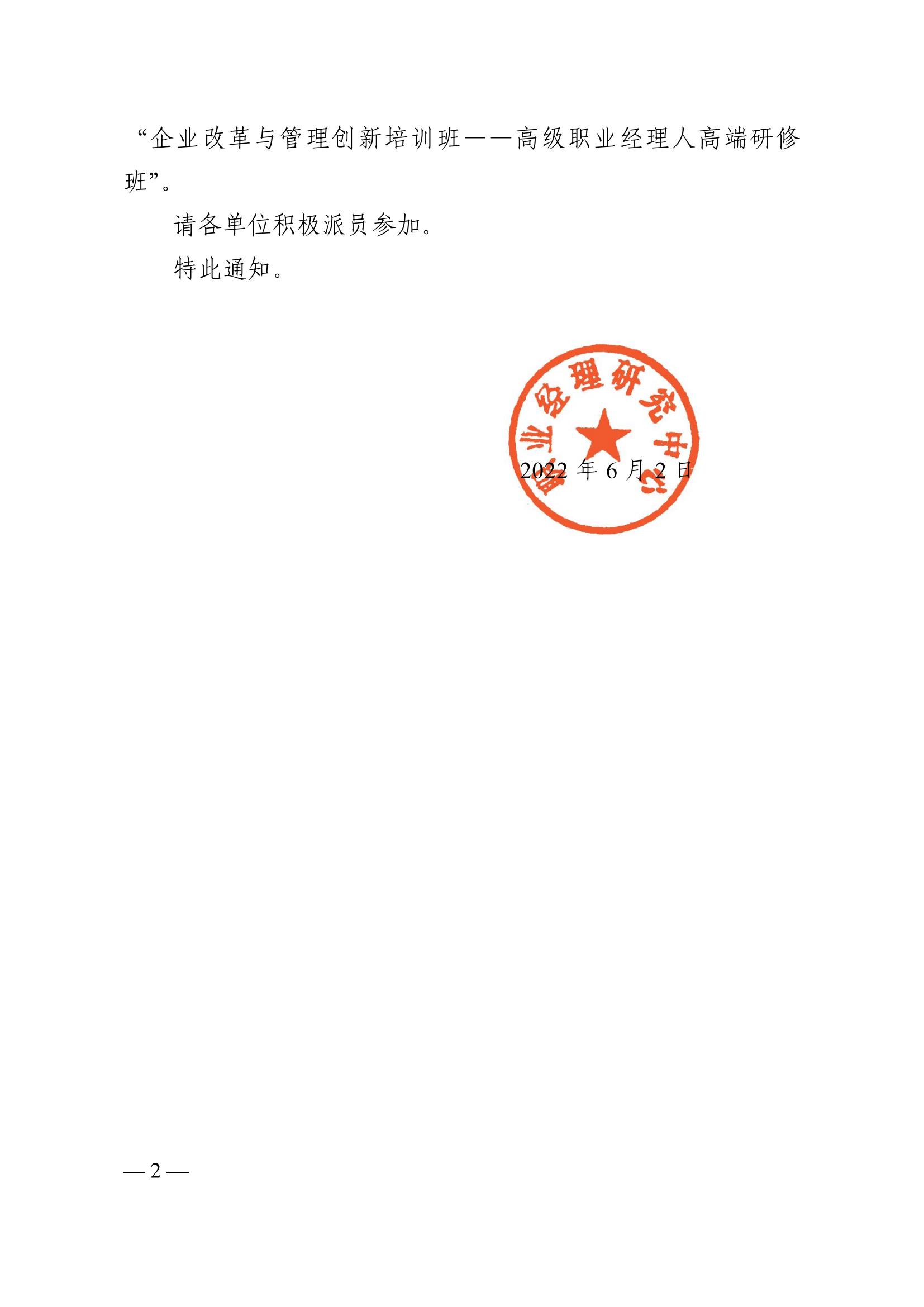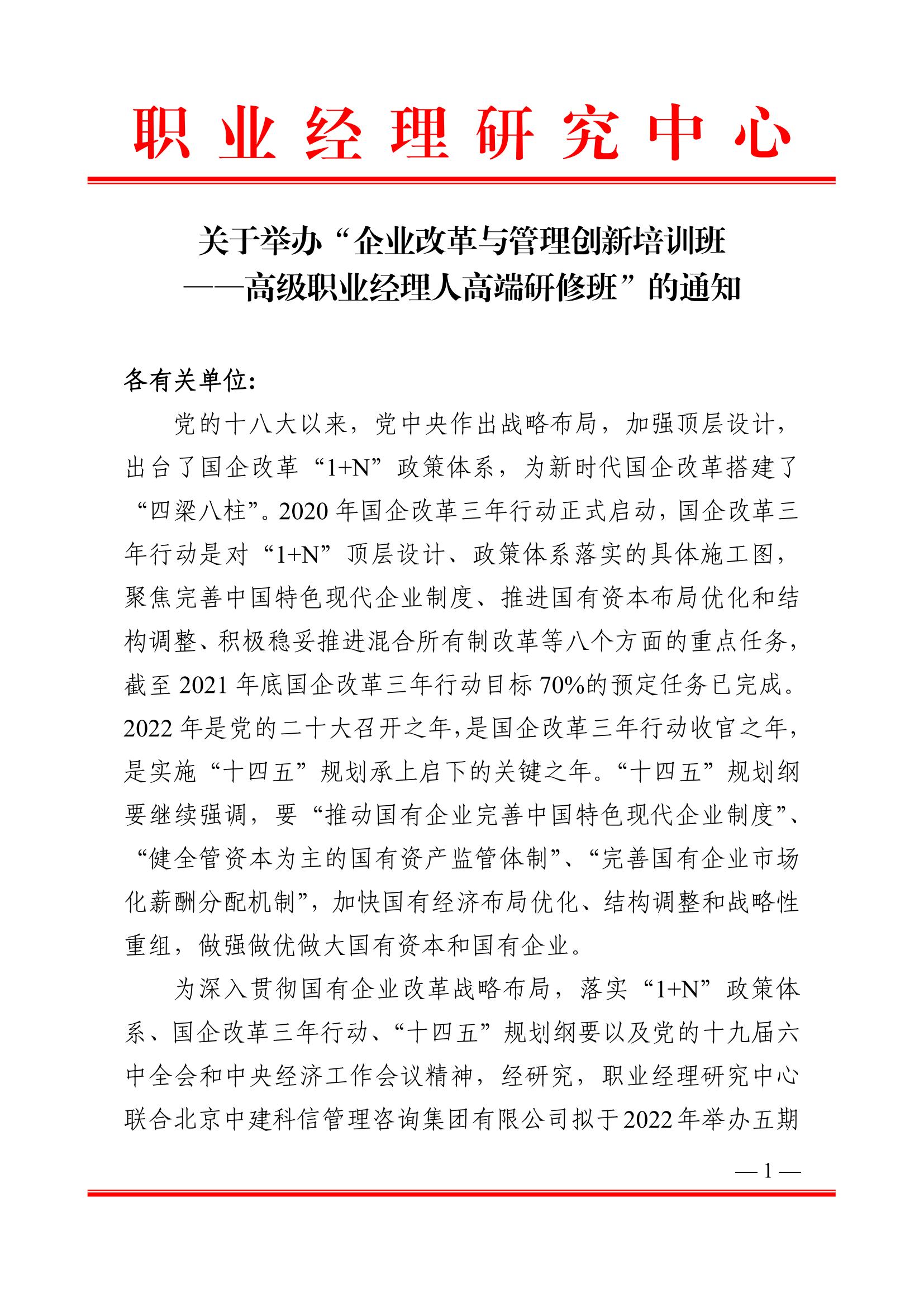 关于举办“企业改革与管理创新培训班--高级职业经理人高端研修班”的通知