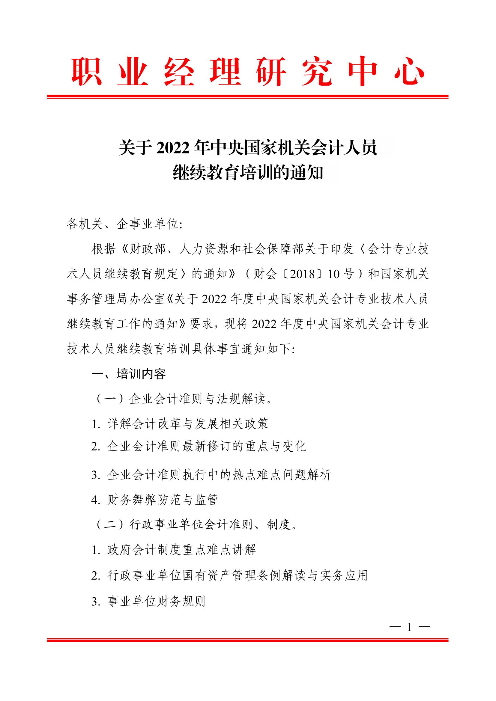 关于2022年中央国家机关会计人员继续教育培训的通知