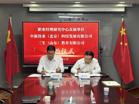 2025年9月27日下午,山东中诚智汇实业集团有限公司总经理、三生(山东)教育有限公司执行董事孙居涛一行到访职业经理研究中心直属企业中新伟业(北京)科技发展有限公司。双方就经营管理人才培训考核项目和职业经理大数据项目进行 了深入交流,双方表示将充分发挥各自的优势效能,共同助力 经营管理人才培养高质量发展,开启合规职业经理人才培养领 域的深度合作,双方洽谈后并举行了合作签约仪式。